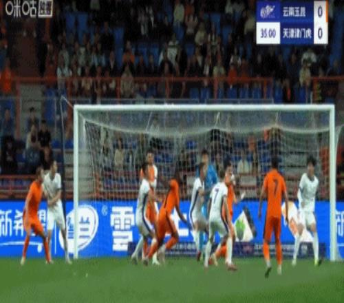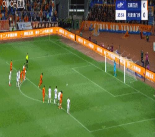 第36分钟,王献钧禁区内手球送点,奥斯卡点射破门,云南玉昆主场1-0!