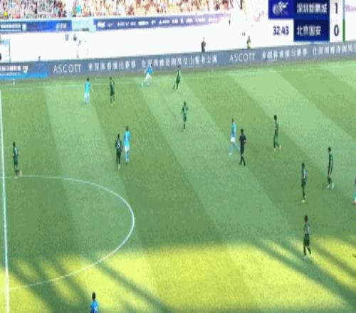 第33分钟,埃杜-加西亚传中,韦斯利门前轻松推射得手,新鹏城2-0领先国安!