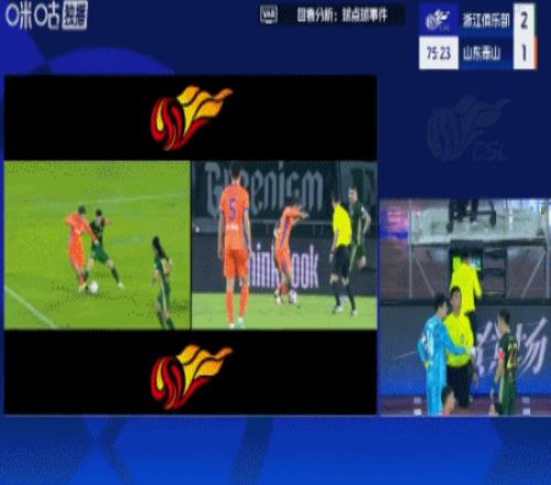 第75分钟,李源一禁区内被程进放倒,VAR介入,裁判判点,克雷桑主罚命中,泰山扳为2-2!