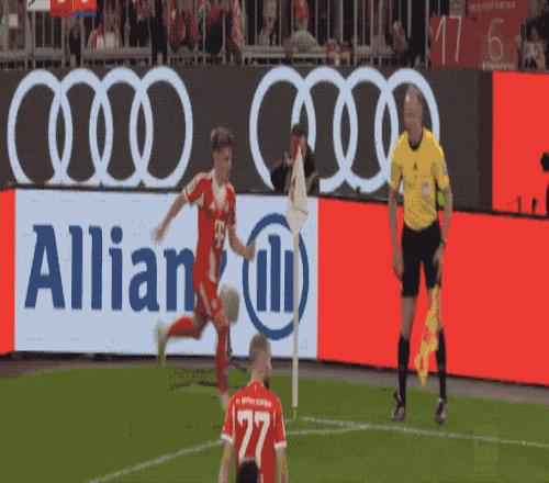 第15分钟,格雷罗禁区内回做,17岁的卡尔毫不犹豫立即起脚,拜仁的前2次射门都来自卡尔。