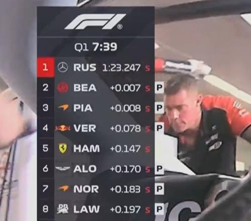 相比起极为团结的红牛阵营,皮亚斯特里和诺里斯两辆麦克拉伦分别落后0.3和0.4秒分列二三。同样在第一个飞行圈,拉塞尔在出弯时出现失误差点上墙......