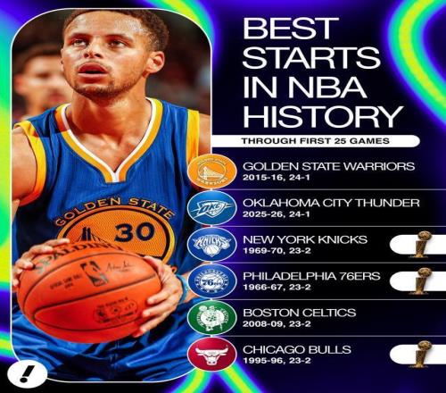 当俄克拉荷马城雷霆打出24胜1负的开局后,人们更加相信,他们很有可能打破2015-16赛季金州勇士创造的常规赛73胜9负的纪录。北京时间12月13日,雷霆球星亚历山大也坦言,只要纪录或奖杯出现在可争取的范围内,他们会力争创造历史。