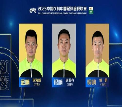 2025赛季中超金哨是李海新、银哨:唐顺齐,铜哨:傅明。联赛颁奖典礼各奖项归属全部揭晓,6家中超俱乐部征战了整个赛季,一无所获,“毛儿都没捞着”!他们是:青岛西海岸、武汉三镇、青岛海牛、云南玉昆、深圳新鹏城和长春亚泰,无有获得任何奖项,而且长春亚泰还降级了。
