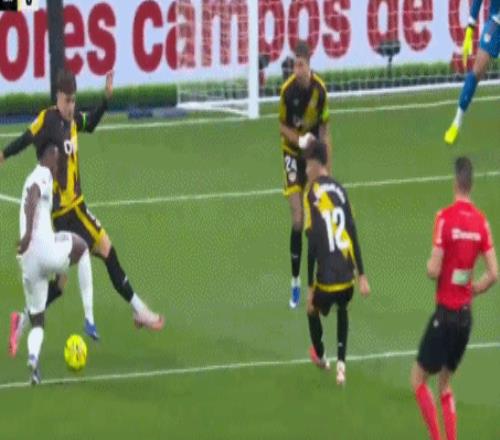 第15分钟,维尼修斯左路得球内切,面对三名后卫的逼抢,维尼修斯右脚劲射,球击中横梁之后反弹入网。进球之后,维尼修斯多次亲吻队徽,并且示意皇马球迷加油。