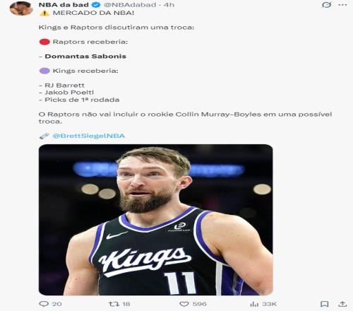 根据美记Aryan的说法,可以确认的是,多伦多猛龙队已经争取到了萨克门托国王球星小萨的加盟。(这位记者是后起之秀,而且爆料出过错误,所以还是要等Shams的确切消息,只能说双方的确有意,交易很有可能达成)