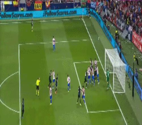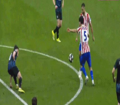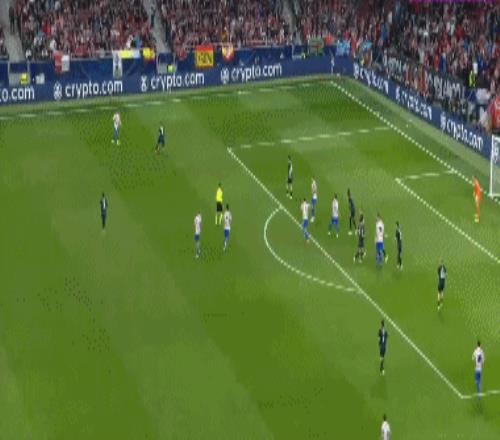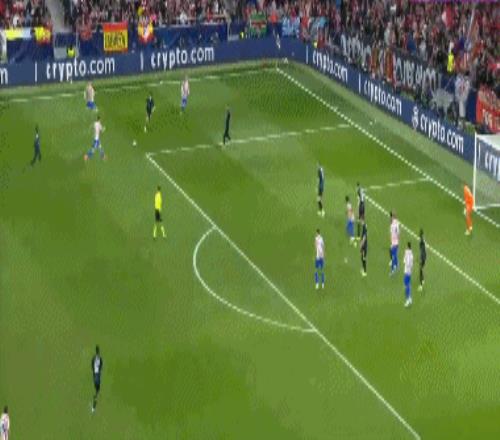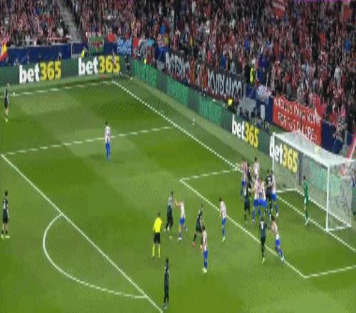 第36分钟,布鲁日角球机会,奥多涅斯头球顶进空门,马竞1-1布鲁日