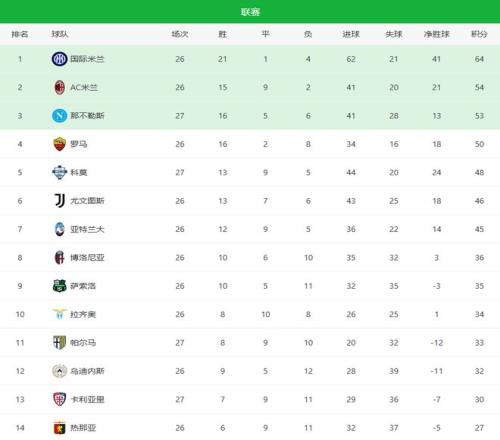 随着黑马31逆转+卫冕冠军21!意甲最新积分榜:25名差6分
