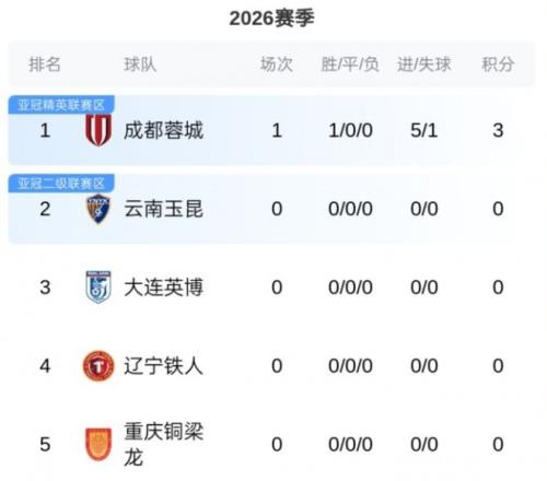 新赛季中超正式开打,揭幕战在成都蓉城的主场进行,这也是成都时隔18年再一次举办中超的开幕式,上一次还是2008年,那时候成都的中超球队还是成都谢菲联。中超首战由成都蓉城对阵深圳新鹏城,凭借韦林顿的梅开二度和胡何韬等人的进球,蓉城主场5-1大胜新鹏城,为新赛季的中超开了一个好头。在这场比赛之后,本赛季的中超积分榜也发生了新的变化。
