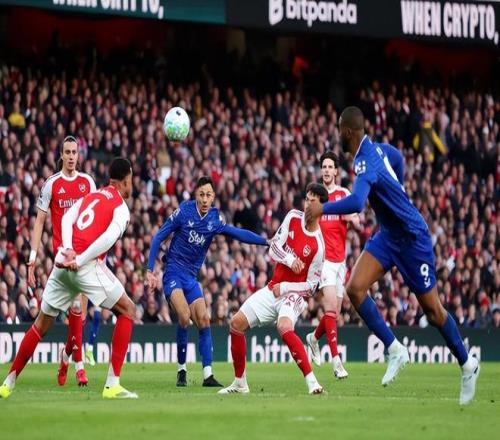 下半场阿森纳再次夺回主动权,第59分钟,卡拉菲奥里头球吊到禁区,萨卡护球转身小角度劲射还是被皮克福德神勇扑出;随后阿尔特塔立马换人,更有速度的马丁内利和身体更强壮的哲凯赖什替补出场。第63分钟,赖斯禁区前沿背身护球分向一侧,埃泽果断兜射打出弧线球擦着横梁稍稍出界;第72分钟,加纳左侧定位球旋入禁区,拉亚出击又扑空,好在是麦克尼尔头球稍稍顶偏。