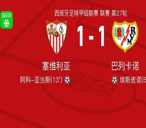 塞维利亚11巴列卡诺,阿科亚当斯破门,埃斯皮诺救主 -
