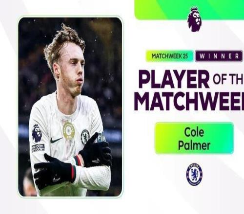 半场戴帽,帕尔默当选英超第25轮最佳球员 -